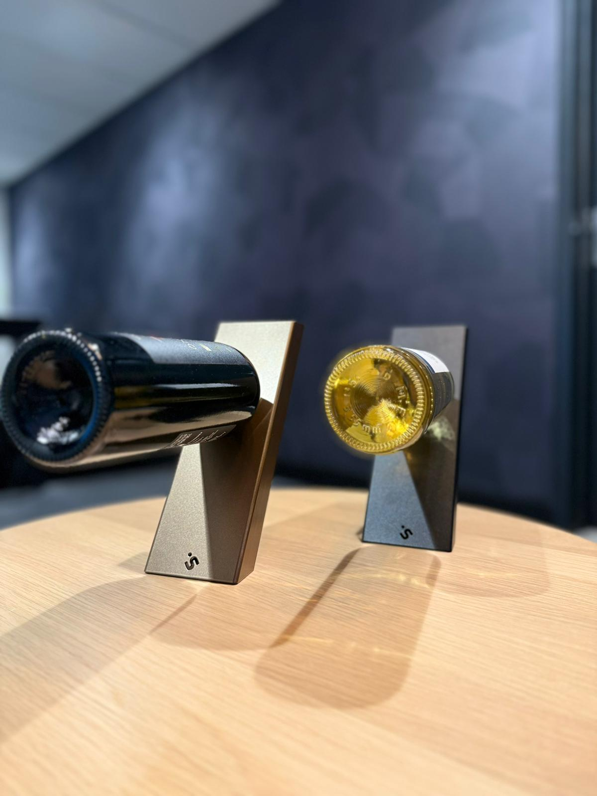 Door de schuine vorm en het precieze balanspunt ontstaat een optisch effect dat meteen de aandacht trekt. VINA is compact, stabiel en geschikt voor standaard wijnflessen van 750 ml. Een subtiele blikvanger die past in moderne en industriële interieurs.